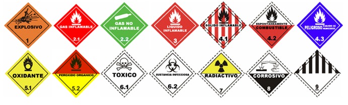 Imagen 1. Pictogramas de clasificación de las sustancias peligrosas. Libro Naranja de las Naciones Unidas.
