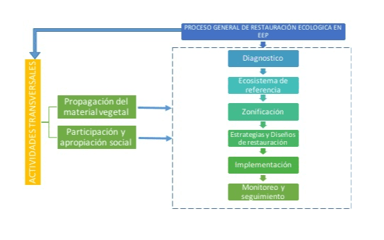 El siguiente esquema muestra de forma generalizada, las actividades realizadas por la SDA para llevar a cabo sus procesos de restauración, las cuales están alineadas con los diferentes protocolos, guías técnicas, manuales y demás publicaciones realizadas por la SDA y otros entes territoriales.