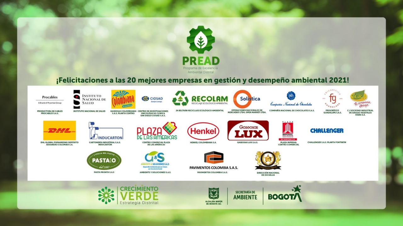 La Secretaría de Ambiente invita a empresas públicas, privadas o mixtas, de cualquier tamaño y actividad económica de Bogotá, que generen impactos ambientales significativos, a participar en la próxima convocatoria del Pread, que se habilitará en febrero del 2022, así como en los demás programas de acompañamiento y fortalecimiento de capacidades.