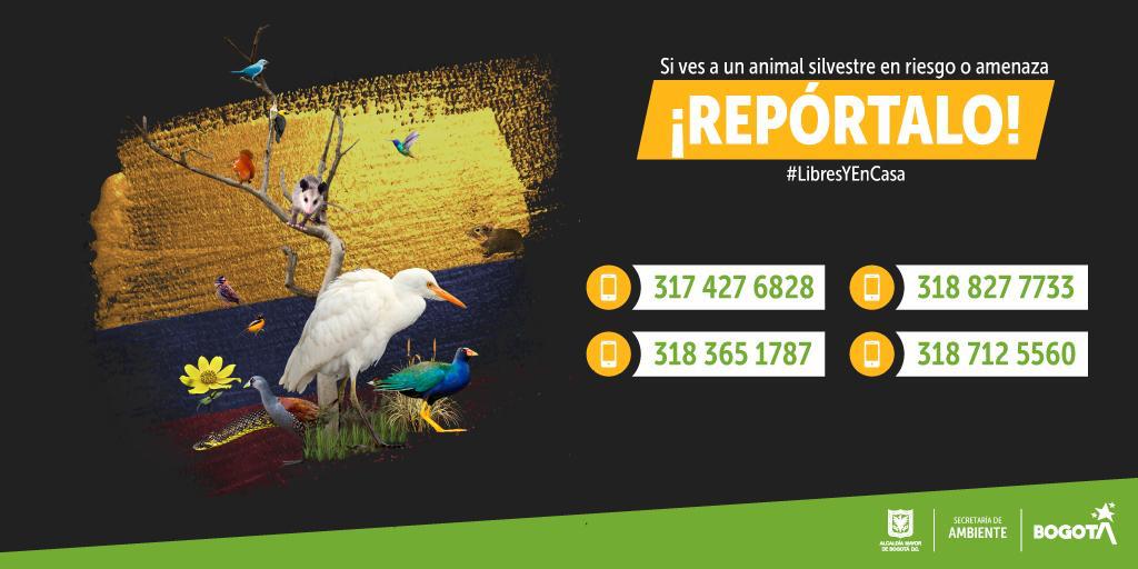 • La Secretaría de Ambiente invita a reportar a los teléfonos 3174276828, 3188277733, 3183651787 o 3187125560 todos aquellos casos de riesgo o amenaza para los animales silvestres. Proteger y conservar la flora y fauna es responsabilidad de todos.