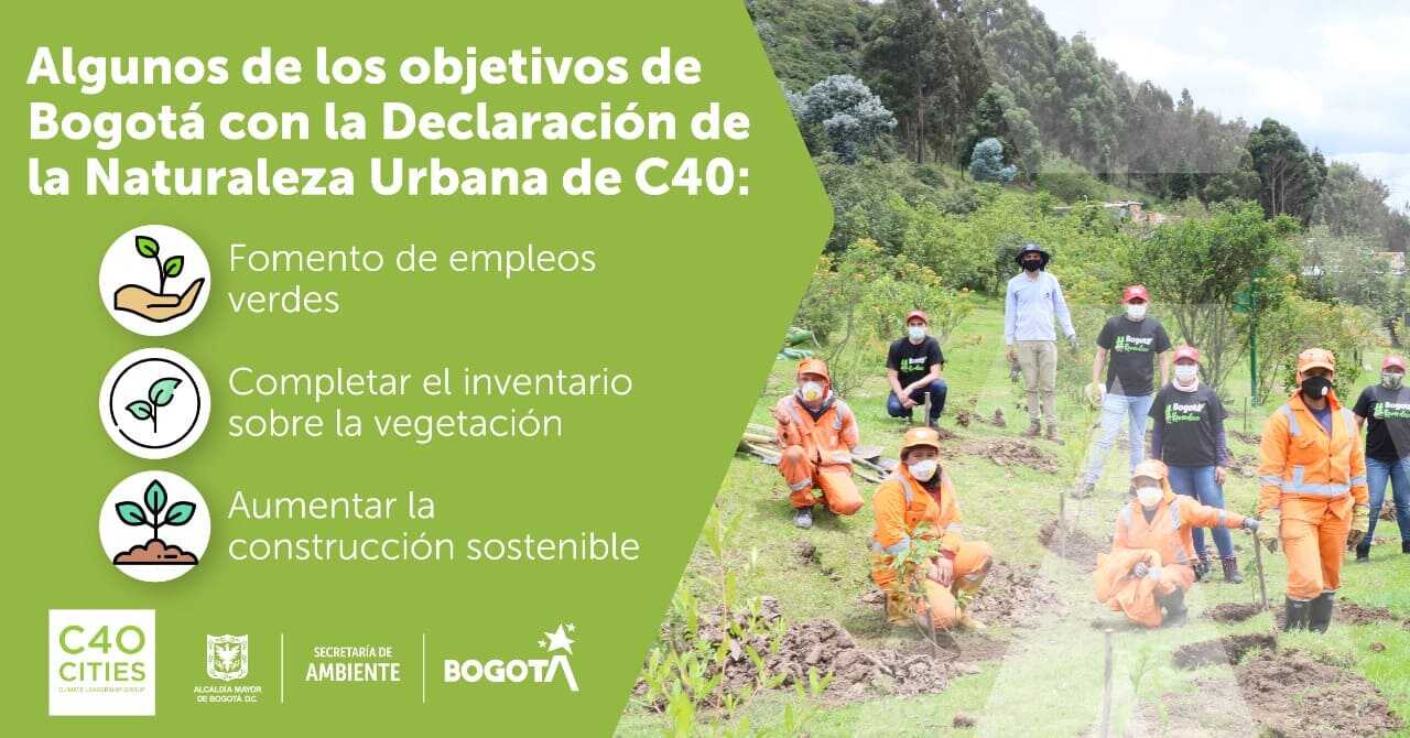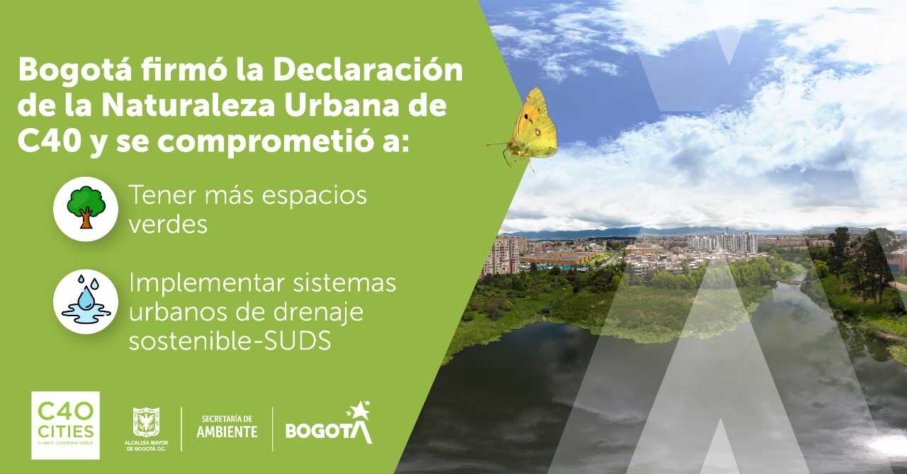 Bogotá, 13 de julio de 2021. (@Ambientebogota). Bogotá sigue comprometida con cambiar sus hábitos y desarrollar acciones conjuntas para enfrentar la crisis climática. Por esto, con otras 31 urbes del mundo, la ciudad firmó la Declaración de la Naturaleza Urbana de la red de ciudades C40, una oportunidad para adaptarse, crear territorios más verdes y resilientes, y mitigar los efectos del cambio climático.