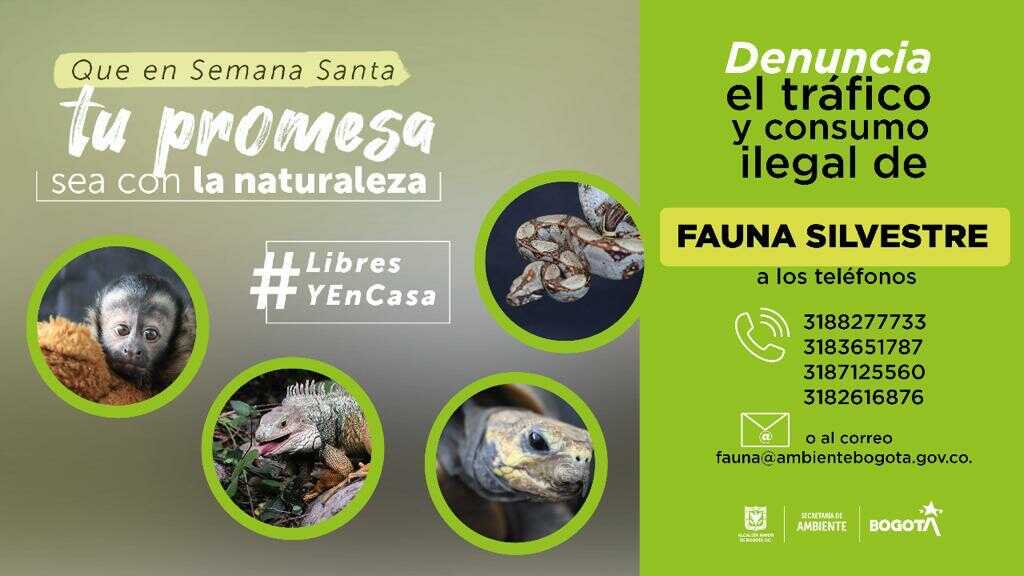 - La Administración de la alcaldesa Claudia López hace un llamado para que esta Semana Santa la promesa de todos sea conservar y proteger la flora y la fauna silvestre.