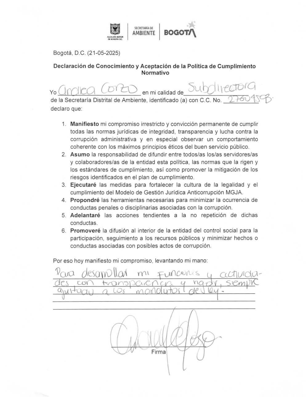 c) Declaraciones de conocimiento y aceptación