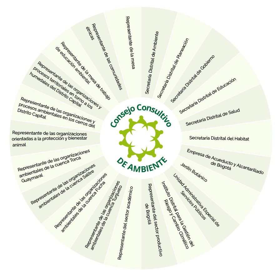 El Consejo Consultivo de Ambiente es la instancia consultiva para estudiar, discutir, apoyar y hacer recomendaciones para la toma de decisiones en el marco de las políticas y estrategias ambientales del Distrito Capital.
