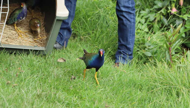 En el caso de la tingua azul (Porphyrio martinica), es un ave migrante de corta distancia que se encuentra distribuida en Norteamérica, Centro y Suramérica. Las poblaciones residentes en Colombia tienen movimientos locales poco conocidos, en los que recorren una distancia aproximada de 114 kilómetros desde zonas de los Llanos Orientales (Meta) hasta la cordillera oriental, incluida Bogotá.