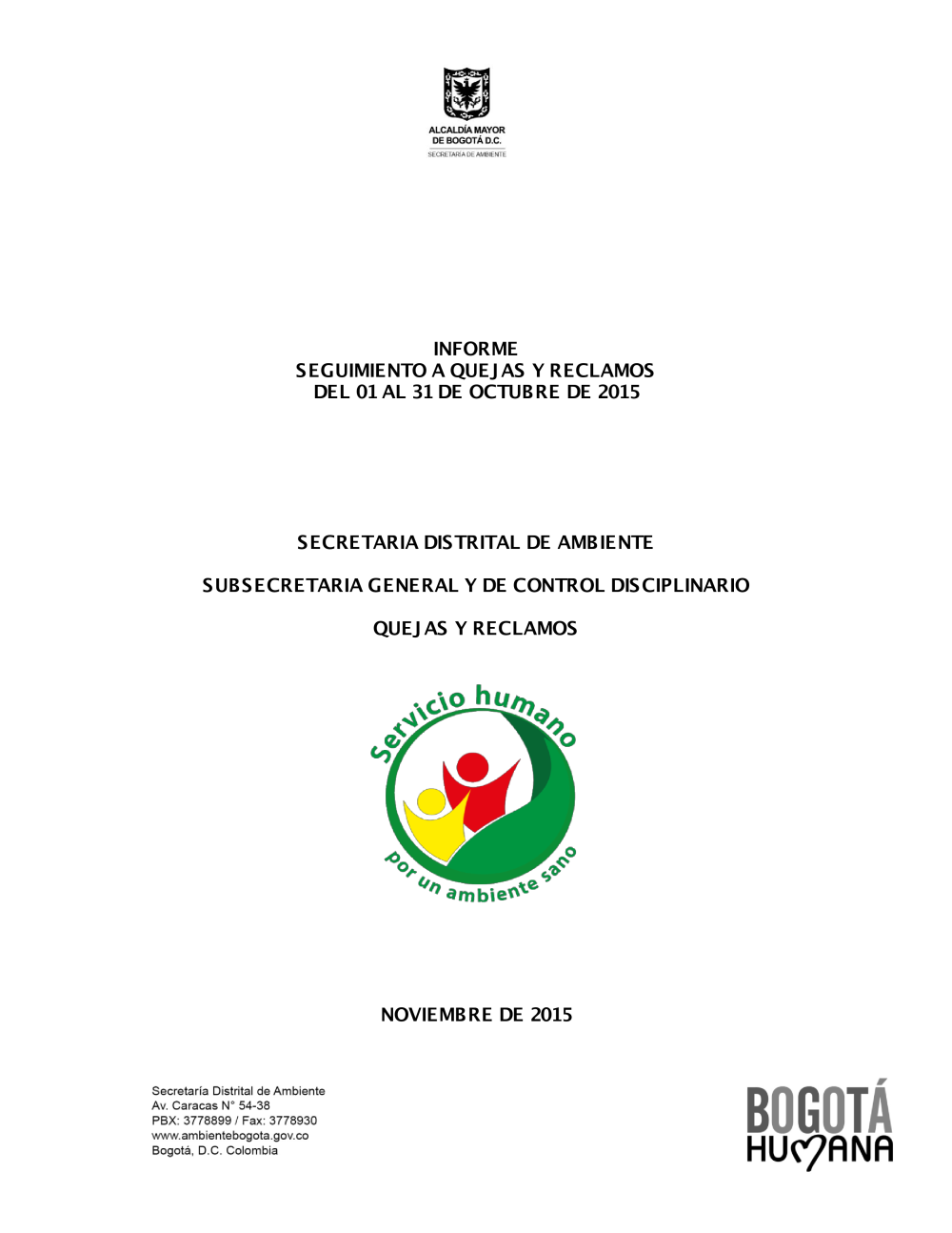 Los siguientes informes fueron elaborados con base en la información que se encuentra en el aplicativo de correspondencia de la entidad (FOREST), el aplicativo sistema distrital de quejas y soluciones SDQS y la base de datos en Excel, esta ultima es llevada por el área de quejas y soluciones.