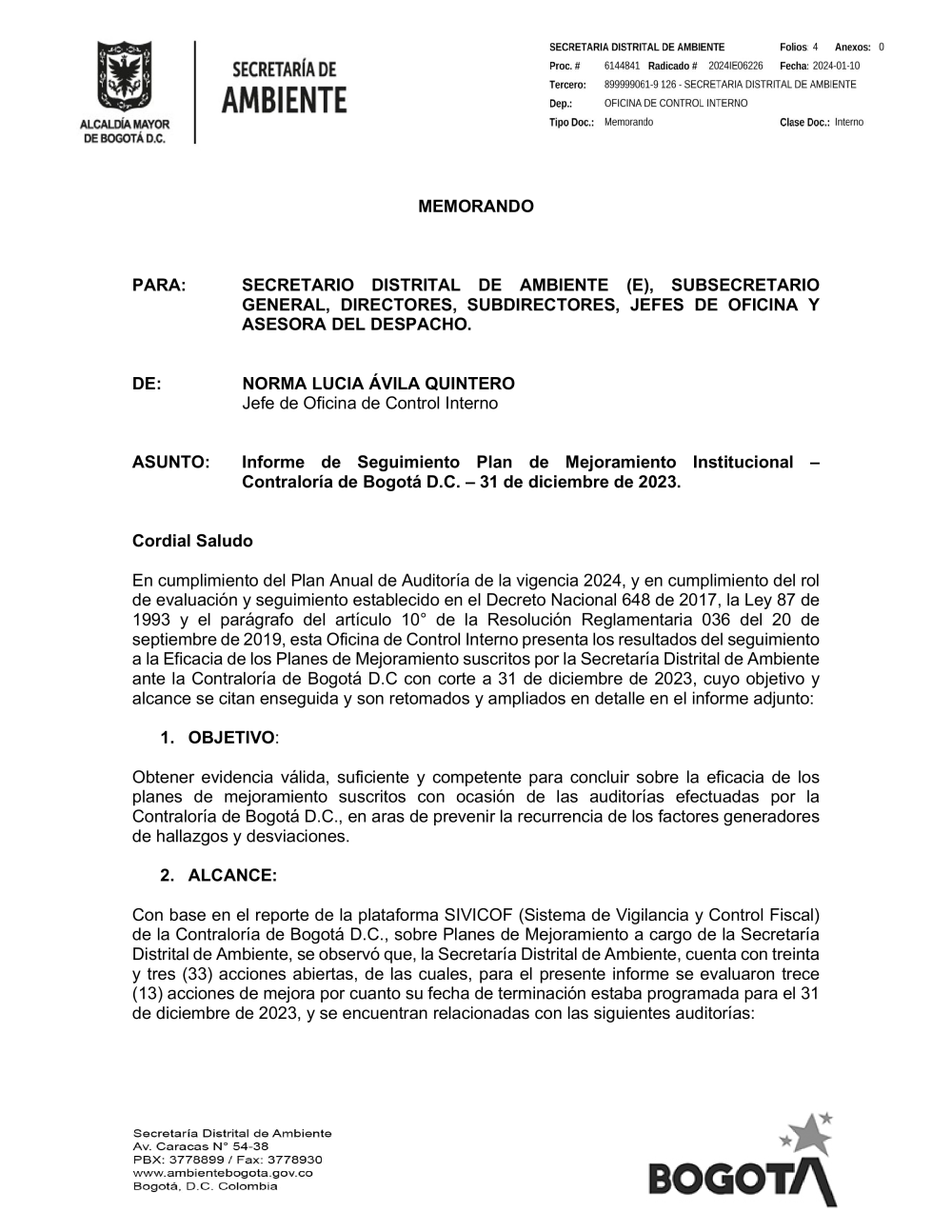 05. Informe de Seguimiento Plan de Mejoramiento Institucional - Contraloría de Bogotá D.C. - 31-dic-2023.pdf