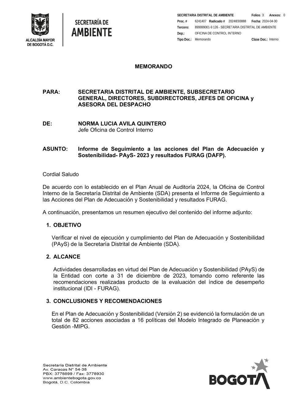 13. Informe de Seguimiento a las acciones del Plan de Adecuación y Sostenibilidad- PAyS- 2023 y resultados FURAG (DAFP.pdf