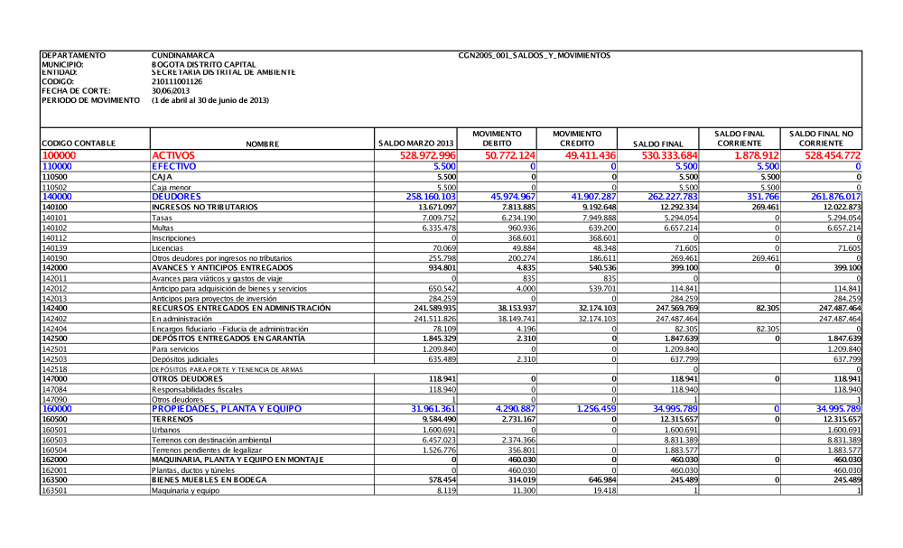 La Secretaría Distrital de Ambiente está sujeta al Marco Normativo para Entidades de Gobierno adoptado por la Resolución 533 de 2015 de la Contaduría General de la Nación (CGN). En cumplimiento de lo establecido en el numeral 37 del artículo 38 de la Ley 1952 de 2019, y conforme al procedimiento para la preparación y publicación de los informes financieros y contables determinado por la CGN, se prepararon los siguientes Informes Financieros y Contables:
