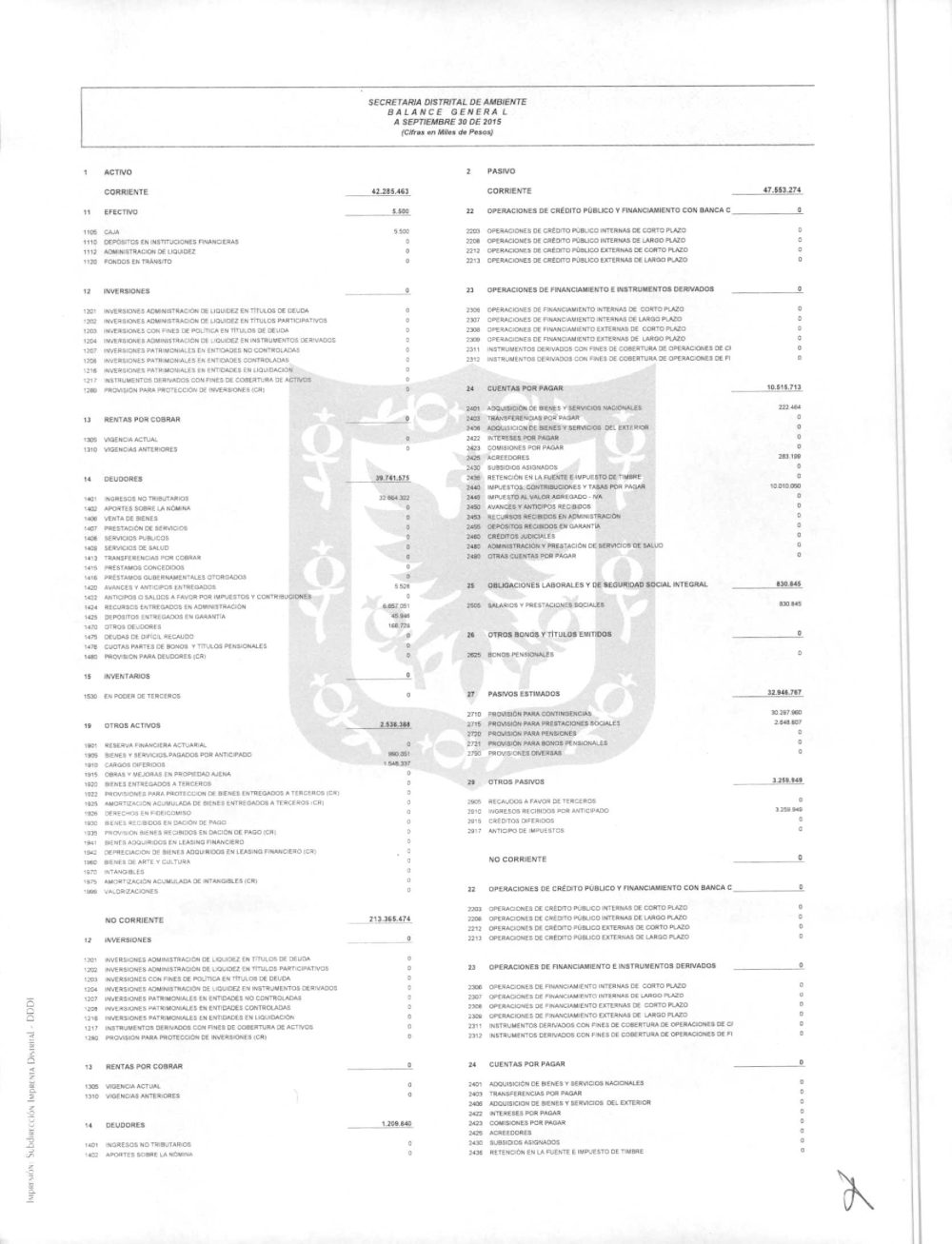 La Secretaría Distrital de Ambiente está sujeta al Marco Normativo para Entidades de Gobierno adoptado por la Resolución 533 de 2015 de la Contaduría General de la Nación (CGN). En cumplimiento de lo establecido en el numeral 37 del artículo 38 de la Ley 1952 de 2019, y conforme al procedimiento para la preparación y publicación de los informes financieros y contables determinado por la CGN, se prepararon los siguientes Informes Financieros y Contables: