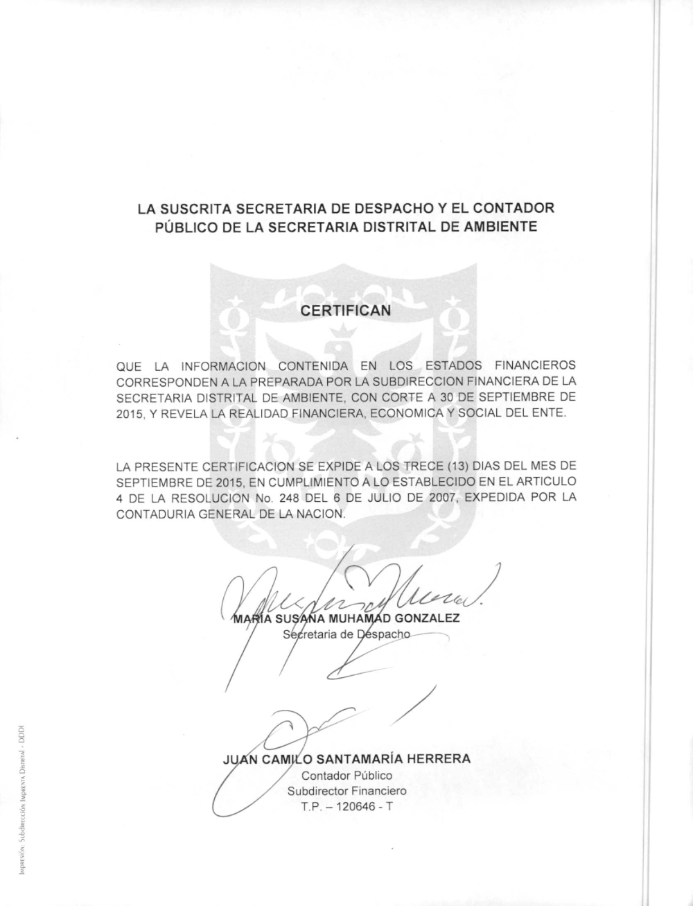 La Secretaría Distrital de Ambiente está sujeta al Marco Normativo para Entidades de Gobierno adoptado por la Resolución 533 de 2015 de la Contaduría General de la Nación (CGN). En cumplimiento de lo establecido en el numeral 37 del artículo 38 de la Ley 1952 de 2019, y conforme al procedimiento para la preparación y publicación de los informes financieros y contables determinado por la CGN, se prepararon los siguientes Informes Financieros y Contables: