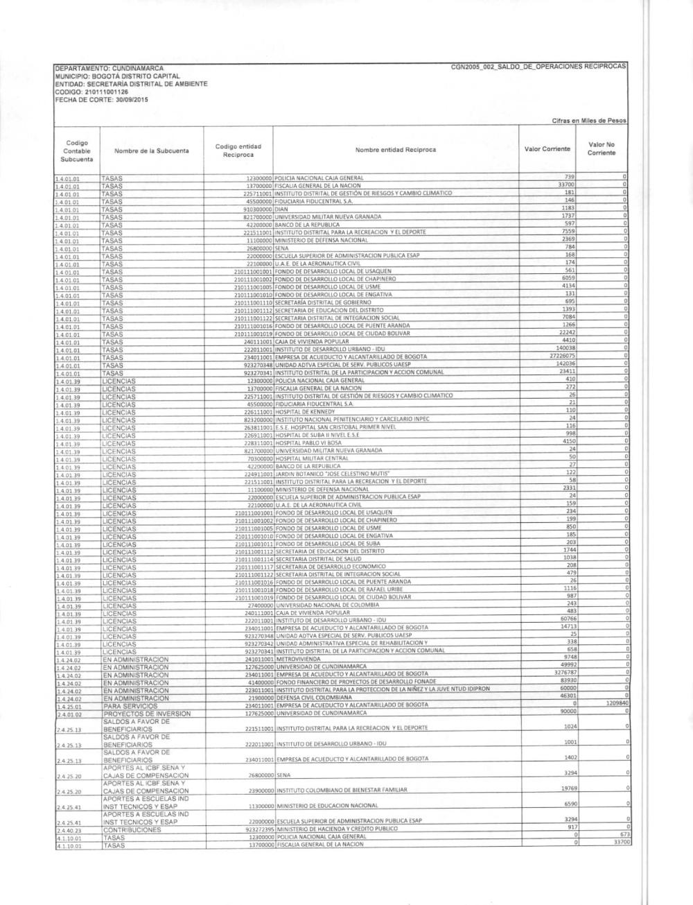 La Secretaría Distrital de Ambiente está sujeta al Marco Normativo para Entidades de Gobierno adoptado por la Resolución 533 de 2015 de la Contaduría General de la Nación (CGN). En cumplimiento de lo establecido en el numeral 37 del artículo 38 de la Ley 1952 de 2019, y conforme al procedimiento para la preparación y publicación de los informes financieros y contables determinado por la CGN, se prepararon los siguientes Informes Financieros y Contables: