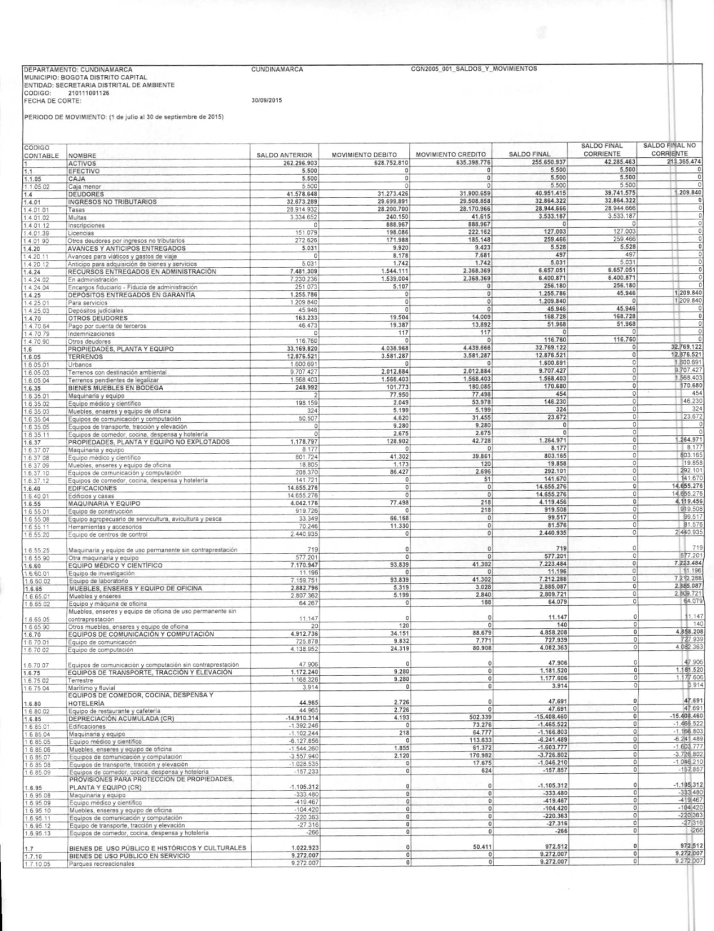 La Secretaría Distrital de Ambiente está sujeta al Marco Normativo para Entidades de Gobierno adoptado por la Resolución 533 de 2015 de la Contaduría General de la Nación (CGN). En cumplimiento de lo establecido en el numeral 37 del artículo 38 de la Ley 1952 de 2019, y conforme al procedimiento para la preparación y publicación de los informes financieros y contables determinado por la CGN, se prepararon los siguientes Informes Financieros y Contables: