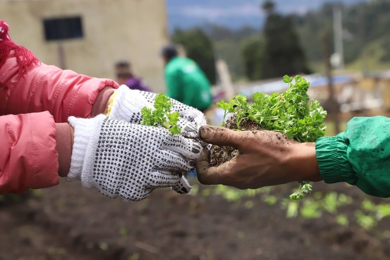 Las huertas colectivas son replicadas por las mujeres en sus hogares para mantener vivas las costumbres campesinas. Foto: Abdel Assiz - Comunicaciones SDA.