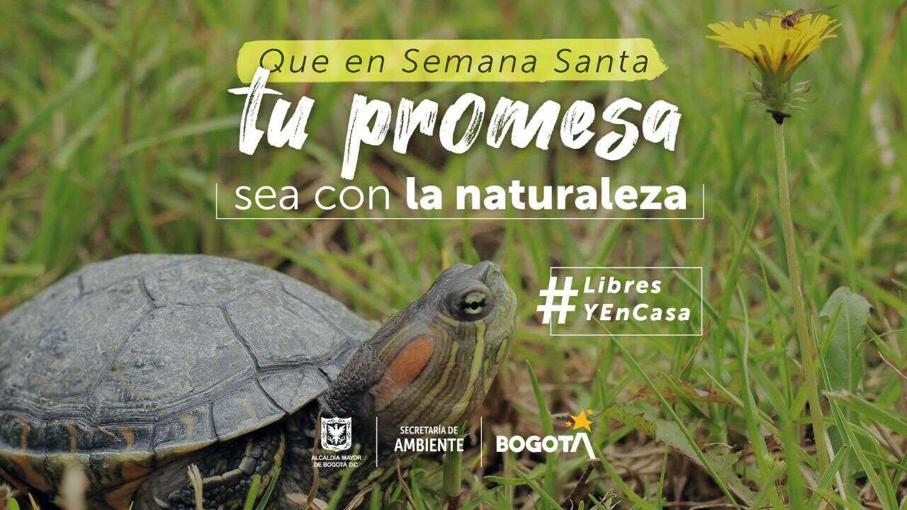Bogotá, 27 de marzo de 2021. (@AmbienteBogota). Que en Semana Santa tu promesa sea con la naturaleza. Esta es la campaña de la Secretaría de Ambiente para que los ciudadanos protejan las especies silvestres durante la semana de reflexión. La fauna, en especial las tortugas hicoteas y las iguanas, sufren las consecuencias del tráfico de animales en esta época del año.