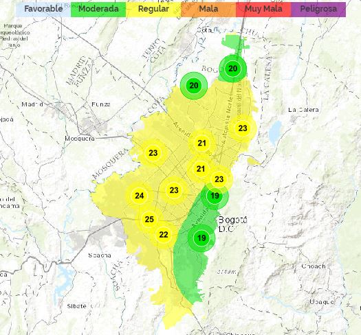 El Índice Bogotano de Calidad del Aire viene reportando en las últimas horas un incremento en la concentración de material particulado 2.5.