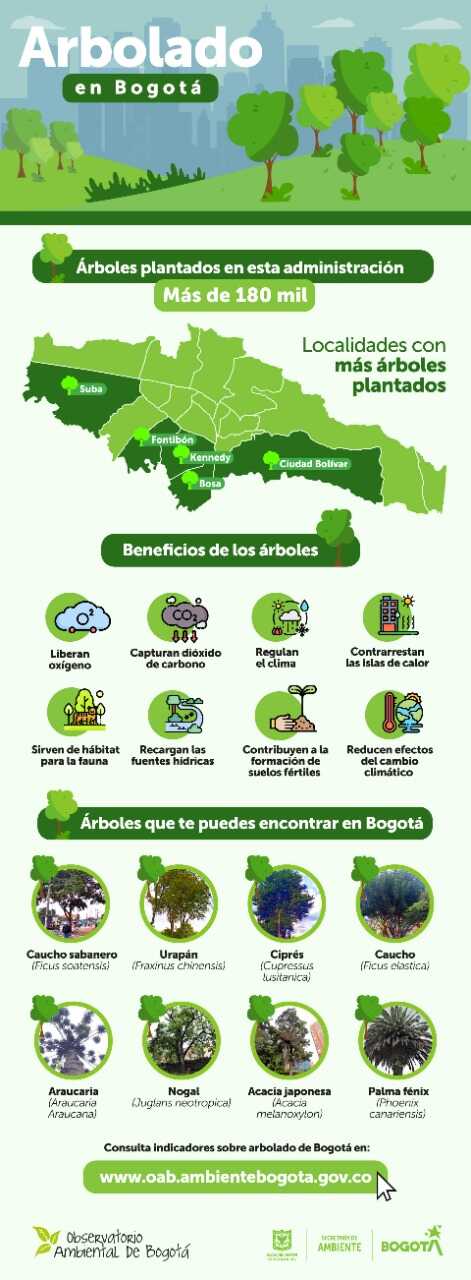 En la siguiente infografía y video puedes conocer más sobre el arbolado en Bogotá.