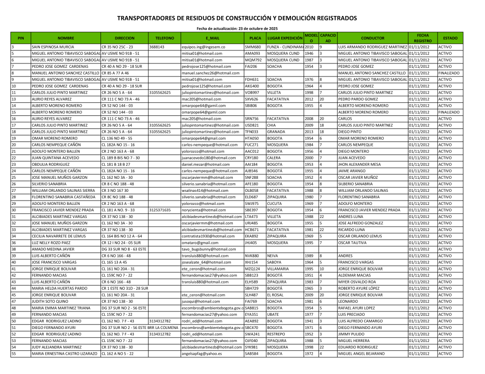 TRANSPORTADORES INSCRITOS ESCOMBROS Octubre 2025.pdf (Versión 1.0)