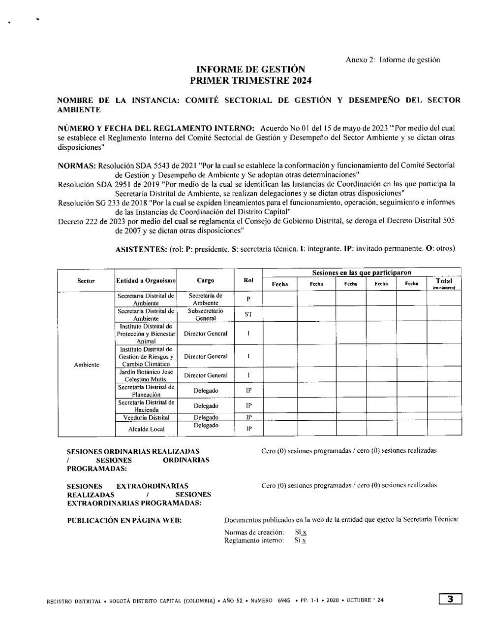 a) Comité Sectorial de Gestión y Desempeño del Sector Ambiente