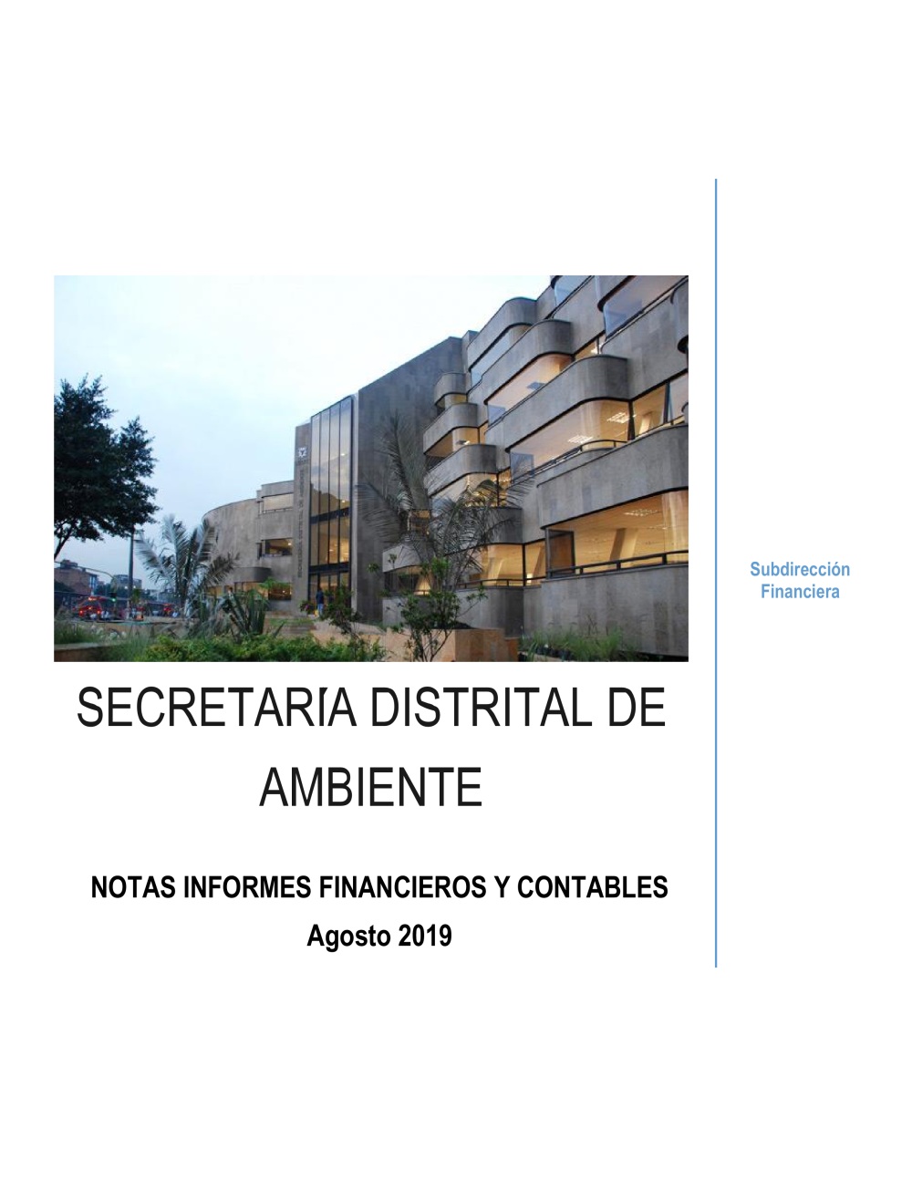 La Secretaría Distrital de Ambiente está sujeta al Marco Normativo para Entidades de Gobierno adoptado por la Resolución 533 de 2015 de la Contaduría General de la Nación (CGN). En cumplimiento de lo establecido en el numeral 37 del artículo 38 de la Ley 1952 de 2019, y conforme al procedimiento para la preparación y publicación de los informes financieros y contables determinado por la CGN, se prepararon los siguientes Informes Financieros y Contables: