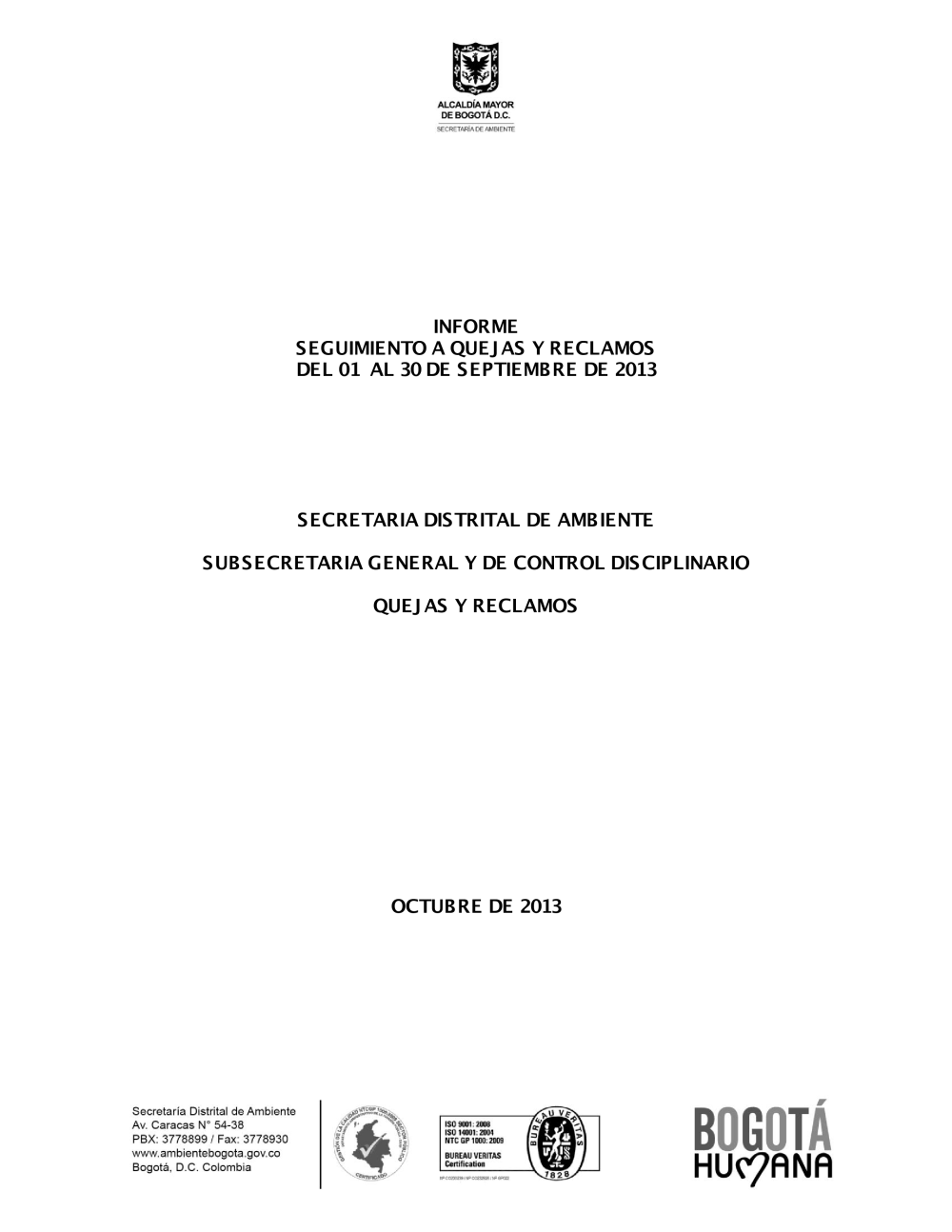 Los siguientes informes fueron elaborados con base en la información que se encuentra en el aplicativo de correspondencia de la entidad (FOREST), el aplicativo sistema distrital de quejas y soluciones SDQS y la base de datos en Excel, esta ultima es llevada por el área de quejas y soluciones.
