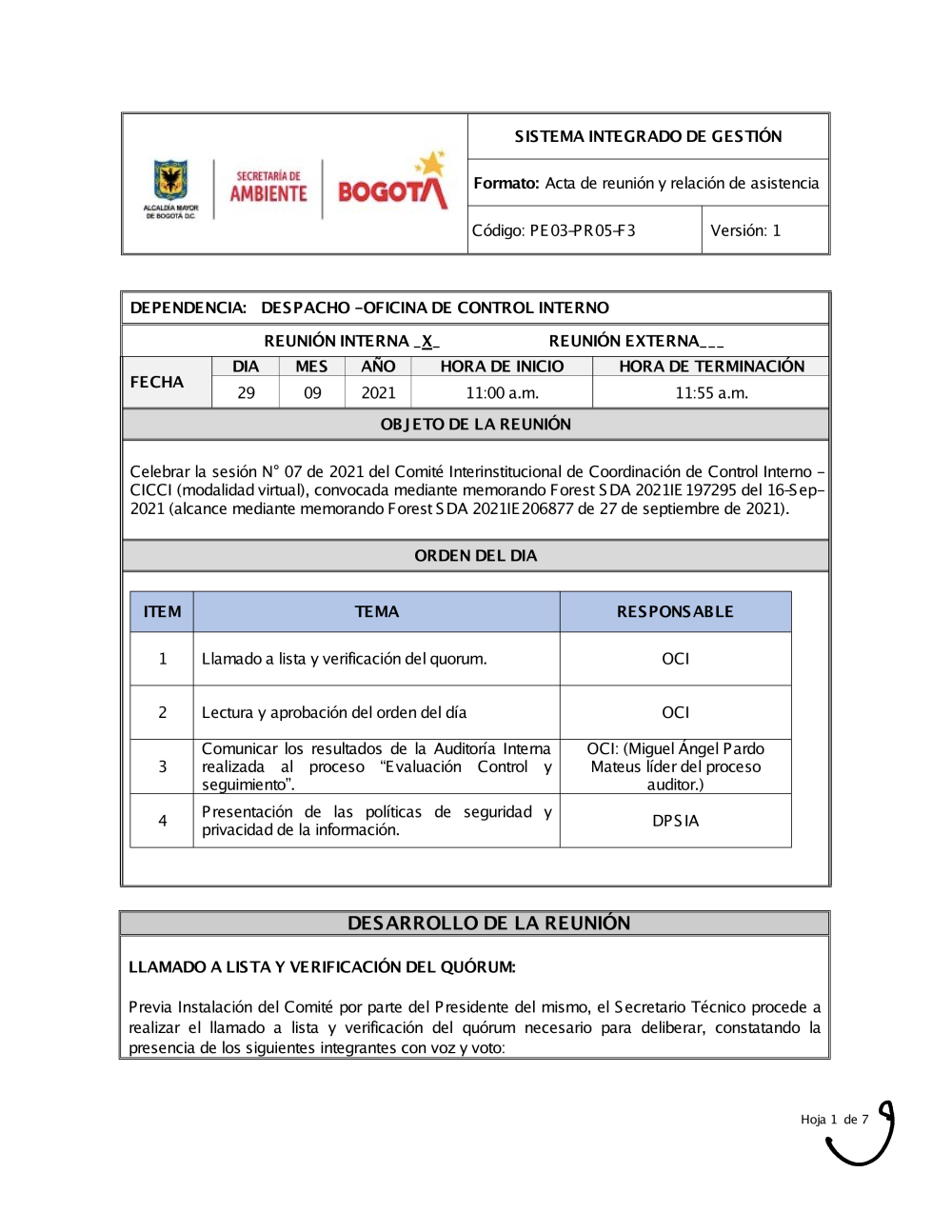 g) Acta de Reunión No 7. Comité de CICCI de fecha 29 de septiembre de 2021