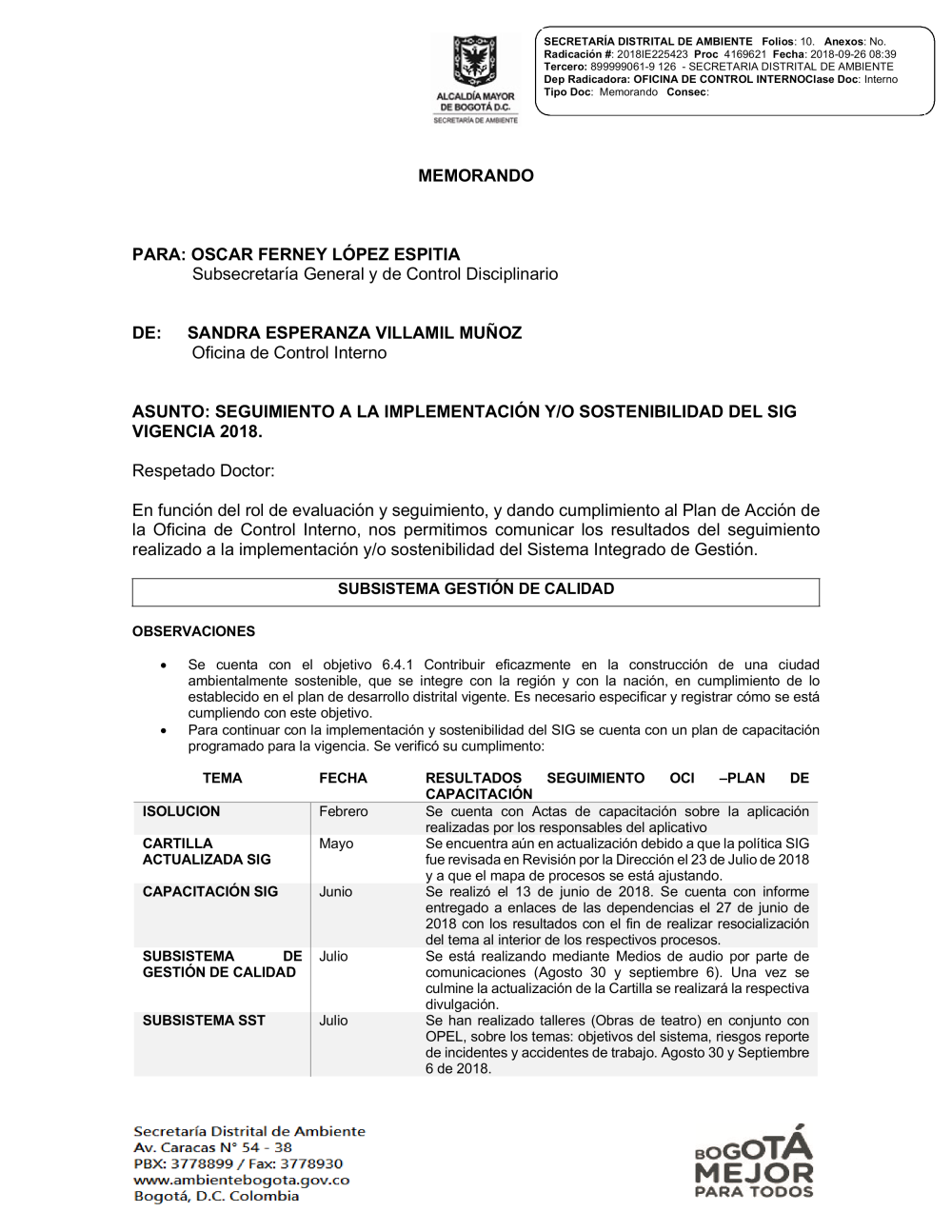 7. Informe seguimiento implementación y sostenibilidad del SIG