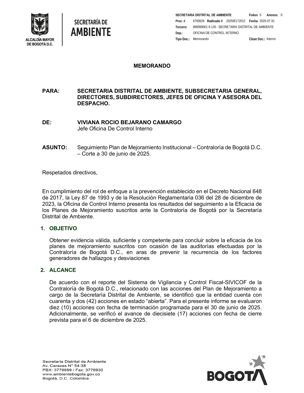 4.1. Seguimiento a Plan de Mejoramiento Institucional - Contraloría de Bogotá - Junio 30 de 2025.pdf
