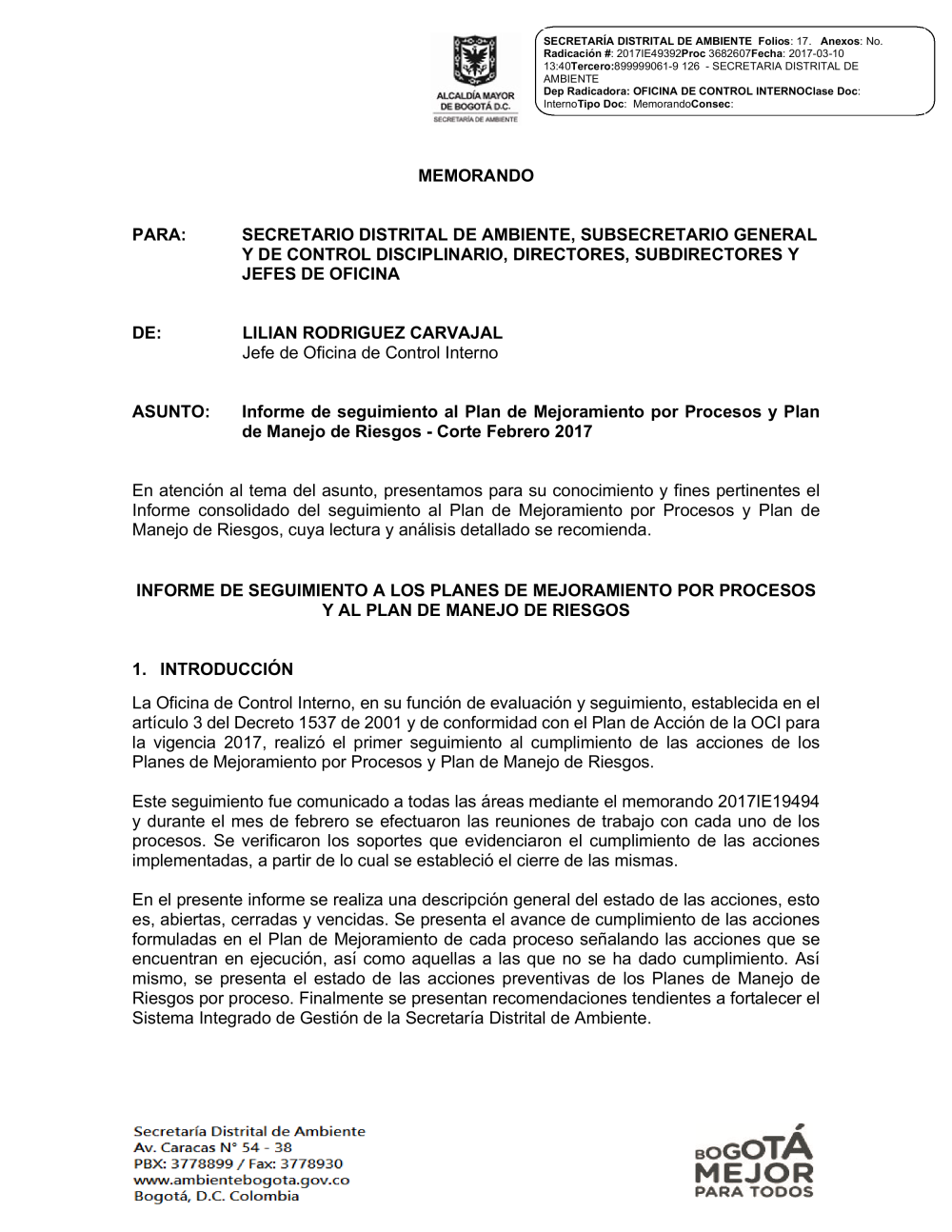 Informe resultado seguimiento plan de mejoramiento por procesos